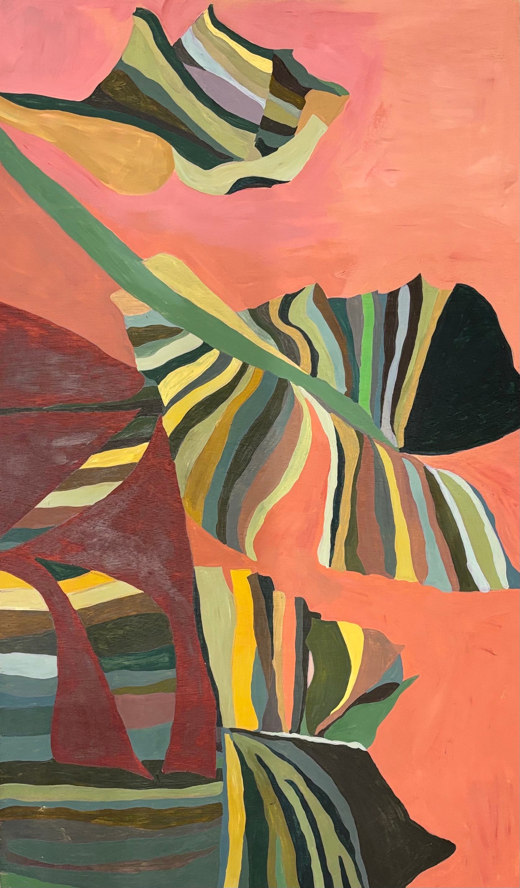 Digital print of acrylic on board painting inspired by banana leaves on a trip to Sri Lanka